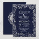 Elegant Navy Blue Silver Floral Glitter Wedding Invitation