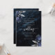 Elegant Navy Blue Silver Floral QR Code Wedding Invitation