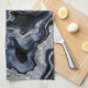 Elegant Navy Blue & Silver Glitter Agate Pattern Kitchen Towel