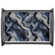 Elegant Navy Blue & Silver Glitter Agate Pattern Serving Tray