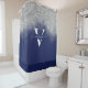 Elegant Navy Blue Silver Glitter Sparkle Monogram Shower Curtain