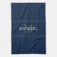 Elegant Navy Blue Silver Monogram Custom Name Kitchen Towel