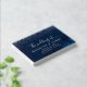 Capture heartfelt messages and memories with this elegant wedding guest book featuring a romantic photo layout and shimmering navy blue background. The front showcases a beautiful starry design with stylish calligraphy announcing "The wedding of" along with customizable names, date, and venue details. Perfect for a modern yet timeless wedding, this guest book adds a personal and polished touch to your special day. Easily personalize it with your own photo and text.