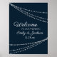 Beautiful, elegant navy blue with sparkling silver string lights wedding welcome poster / banner. Contact us for help with customization and matching products.