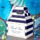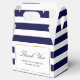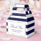 Easily personalize these navy blue striped wedding favor boxes with your wedding details. These personalized thank you favor boxes can be customized to other occasions, such as birthdays, bridal, or baby showers.