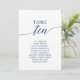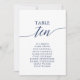 These elegant navy blue table number 10 seating chart cards are perfect for a simple wedding. The neutral design features a minimalist card decorated with romantic and whimsical typography. The card prints on the front and back (double-sided).