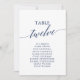 These elegant navy blue table number 12 seating chart cards are perfect for a simple wedding. The neutral design features a minimalist card decorated with romantic and whimsical typography. The card prints on the front and back (double-sided).