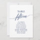 These elegant navy blue table number 15 seating chart cards are perfect for a simple wedding. The neutral design features a minimalist card decorated with romantic and whimsical typography. The card prints on the front and back (double-sided).