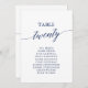 Elegant Navy Blue Table Number 20 Seating Chart