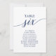 These elegant navy blue table number 6 seating chart cards are perfect for a simple wedding. The neutral design features a minimalist card decorated with romantic and whimsical typography. The card prints on the front and back (double-sided).