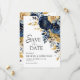 Elegant Navy Blue Terracotta Gold Floral Wedding Save The Date