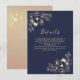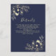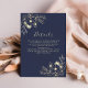 Add an extra touch of refinement to your wedding suite with this elegant navy blue details card. Adorned with vintage-style gold floral artwork, it's the perfect way to share wedding website links, reception info, accommodations, or other guest instructions.