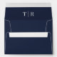 Complete your wedding stationery with the Elegant Navy Blue Wedding Envelope, designed to exude timeless sophistication. Featuring a deep navy blue background inside and out, the inside top flap showcases the bride and groom’s initials in crisp white, adding a personalized and refined detail. The outside top flap displays the couple's name and address in matching white lettering, creating a cohesive and polished look. Perfect for modern, formal, or minimalist weddings, this envelope pairs beautifully with any elegant wedding suite, making a lasting impression from the moment it’s received.