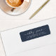 An elegant navy blue wedding return address label featuring graceful white calligraphy and classic serif text. Perfect for modern or formal weddings, this timeless navy style adds sophistication to envelopes and stationery. Fully customizable with your own names and address.