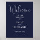 This navy blue elegant script wedding welcome sign can be personalized with all your special wedding day information. Designed by Thisisnotme©