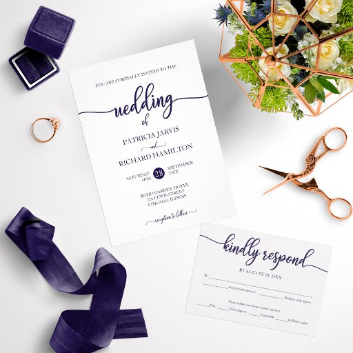 Elegant Navy Blue White Calligraphy Bridal Shower Invitation