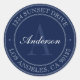 Elegant Navy Blue & White Monogram Address Classic Round Sticker