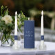 Elegant simple minimal wedding navy blue candle set featuring a classy stylish chic trendy white calligraphy script. ++++++++++++++++++++ Easy to personalize with your details! Suitable for formal black tie neutral weddings.