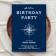 Elegant Navy Blue White Nautical Compass Birthday Invitation