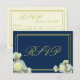 Elegant Navy Blue White Roses Minimal RSVP card
