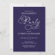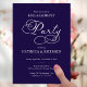 Yes, you can print on the back of your invitation for free! Most designs already have a corresponding design on the back that can be personalized using the Design Tool and going to Layers. This is a great way to communicate more information or further personalize your Elegant Navy Blue White Script Engagement Party Invitation. The option is really up to you.