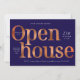 Create modern business invites for your real estate event or open house with this elegant navy blue and bronze gold effect Open House Invitation. This professional property sale event invitation features a minimal layout with bold serif fonts and space for your logo and custom event details.