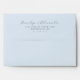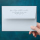 This wedding envelope features a minimalist and elegant design with a focus on typography, using a clean white background to highlight the text. The color palette is dominated by a deep navy blue, creating a sophisticated and formal aesthetic. A flowing cursive script adds elegance for names, while a straightforward sans-serif font provides a contemporary contrast for address details. The layout is centered, ensuring balance and symmetry, making it perfect for those seeking a classic and timeless look for their special occasion.