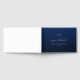 This elegant wedding guest book cover features a minimalist design on a deep navy blue background, creating a sophisticated and modern look. The layout includes stylish cursive script for the word "guestbook," complemented by clean sans-serif fonts for personalized names and date, offering both clarity and charm. The high-contrast white text stands out beautifully against the dark backdrop, enhancing readability while maintaining an uncluttered appearance. Perfect for capturing memories at your special event, this design exudes warmth and formality, making it ideal for weddings or significant celebrations.