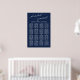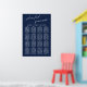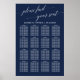 This elegant navy calligraphy seating chart poster is perfect for a simple wedding. The neutral design features a minimalist sign decorated with romantic and whimsical typography in navy blue and white. This wedding poster includes enough room for up to 16 tables (160 guests). In addition to the placement of each guest, personalize this sign with the names of the bride and groom and the wedding date. This seating chart can be used for a wedding reception or any special event.