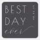 This elegant wedding sticker features a modern, minimalistic design with a dark navy or charcoal gray background. The layout is centered and balanced, showcasing the phrase "BEST DAY ever" in a mix of bold sans-serif and flowing cursive fonts, creating a dynamic yet harmonious look. The color palette consists of crisp white text that stands out against the sophisticated backdrop, conveying a mood of celebration and joy. Perfect for marking special moments, this sticker combines simplicity with style, making it an ideal choice for those seeking a memorable declaration on their big day.
