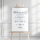 Make a refined first impression with this elegant navy calligraphy "Welcome to the Wedding of" sign featuring graceful swash flourishes. The deep navy typography on white creates a crisp, classic look perfect for nautical, coastal, or formal celebrations. A polished easel display for your ceremony or reception entrance. All text is fully customizable.