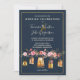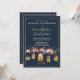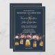 Elegant Navy Coral Floral Gold Lights Wedding Invitation
