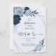 elegant navy dusty blue flowers bridal shower invitation