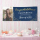 Mark your graduate's milestone with a modern touch! Our graduation banners boast a stylish navy blue background, customizable to your choice of color. Complete with a personal photograph of the graduate, a sprinkling of gold sparkly glitter, and 'Congratulations' rendered in elegant gold foil script. We will proudly display the graduate's name, school, and class year, capturing the essence of this momentous occasion in one beautiful banner.