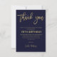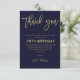 Elegant Navy Gold 70th Birthday Thank You Card