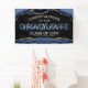 This elegant and modern graduation banner features a black background with navy blue and faux gold abstract pattern, their name in calligraphy script text, class year and name of school.