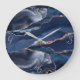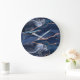 Elegant Navy Gold Agate Abstract Silver Numbers Large Clock