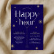 Create modern Company Happy Hour invitations for your networking event, appreciation evening or corporate celebration using this navy blue and gold invite design. Featuring faux gold effects over a navy background with stylish serif fonts, a cocktail glass and subtle sparkle details. This corporate event invite can be used for your Team-building / employee morale events, Networking meetings, Post-conference and seminar socials and more!