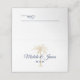 Simply elegant place card design featuring the bride and groom's names and wedding date in modern script and navy blue text along with an artistic golden palm tree. A coordinating navy blue background is on the back inside of the folded card. Please contact me if you need help or a custom order.