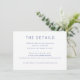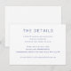 This wedding enclosure card features a minimalist design with a clean, elegant layout that emphasizes clarity and sophistication. The deep navy blue text on a white background creates a professional and straightforward appearance, while the classic serif font adds a touch of formality. Perfect for conveying important logistical details, this card is ideal for weddings, ensuring guests have all the necessary information in a visually appealing manner.