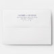 This wedding envelope features a minimalist design with a clean, balanced layout on a white background. The deep navy blue text stands out crisply against the backdrop, using elegant serif fonts for both names and address details. Perfectly centered elements create a symmetrical look, conveying sophistication and formality. The absence of decorative motifs emphasizes clarity and understated elegance, making it ideal for couples seeking a modern yet classic aesthetic for their special day.
