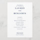 This wedding program features a clean, minimalist layout with ample negative space on a white background, creating an elegant and sophisticated look. The deep navy blue text contrasts beautifully against the backdrop, enhancing readability and formality. Utilizing crisp, vector-based typography, the design combines bold serif fonts for names with cursive script for "and," adding a touch of elegance. Perfect for couples seeking a modern yet traditional aesthetic, this program is ideal for weddings that celebrate clarity and simplicity.