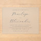 This elegant wedding invitation features a classic and timeless design with centered text on a light cream background. The color palette includes dark navy blue lettering, creating a sophisticated contrast. The layout is vertically aligned, showcasing the names in a flowing script font, while the supporting details are presented in clean serif fonts. The minimalistic approach emphasizes formality and refinement, making it perfect for a traditional wedding celebration.