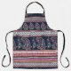Great color and even though I ordered the kid size, it covers well enough to use during the holidays. I am not a big woman and prefer a shorter apron. I stand 5"6" and the length of the garment goes to mid-thigh. The tie straps fit well at my waist and even though there is no neck strap adjustment, the opening is plenty big enough. I am happy with the size and fit. I am sharing my apron with my 10 year old grandson, too! The color is vibrant and looks good, as shown on the website. The stitching looks strong and reinforced. Photographed is front side and back side of the apron, reinforced straps and coloring. My phone camera may not be the best at showing the details.