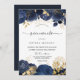 Elegant Navy Roses Gold leaf Quinceanera Party Inv Invitation