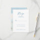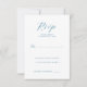 This elegant wedding RSVP card features a minimalist design with a clean white background and deep navy blue text. The layout is structured, with the word "RSVP" prominently displayed in cursive at the top, followed by a simple serif font for additional details. Customizable fields allow for personalization, including spaces for names and attendance numbers. The overall style exudes sophistication and formality, making it perfect for couples seeking a classic and refined touch for their wedding invitations.