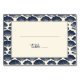 This elegant wedding place card features a vintage-inspired design with a navy blue scallop shell pattern bordering a cream central area, creating a classic and timeless look. The layout includes customizable lines for guest names and table numbers, highlighted by an artistic cursive font that adds sophistication. Perfect for beach or coastal-themed weddings, the balanced composition and refined color palette convey a sense of calmness and order, making it ideal for organizing seating arrangements with style.