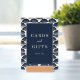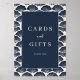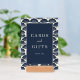 This elegant wedding tabletop sign features a sophisticated navy blue and white color palette, creating a timeless and refined aesthetic. The design showcases stylized shell motifs arranged in a grid pattern around a central panel, which includes clean serif typography with a touch of cursive for added elegance. The words "CARDS and GIFTS" are prominently displayed, inviting guests to express their gratitude with a "THANK YOU" message. Perfect for adding a formal yet warm touch to your wedding reception, this sign combines classic style with contemporary simplicity.