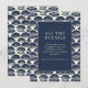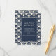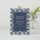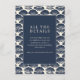 This elegant wedding enclosure card features a sophisticated navy blue color palette with a repeating shell motif border, creating a classic and refined look. The central panel is framed by intricate, symmetrical shells arranged in a grid pattern, adding visual interest without overwhelming the design. The text is presented in a clean serif font, with "ALL THE DETAILS" prominently displayed at the top, guiding guests to visit a customizable website for more information. The overall layout is balanced and professional, making it perfect for formal weddings that aim to convey organization and thoughtfulness.