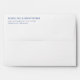 This wedding envelope features a minimalist design with a clean, centered layout on a plain white background. The deep navy blue text stands out elegantly against the backdrop, using crisp, modern typography that emphasizes clarity and sophistication. With its simple yet refined aesthetic, this envelope is perfect for conveying essential information in a professional and stylish manner, ideal for formal occasions like weddings.